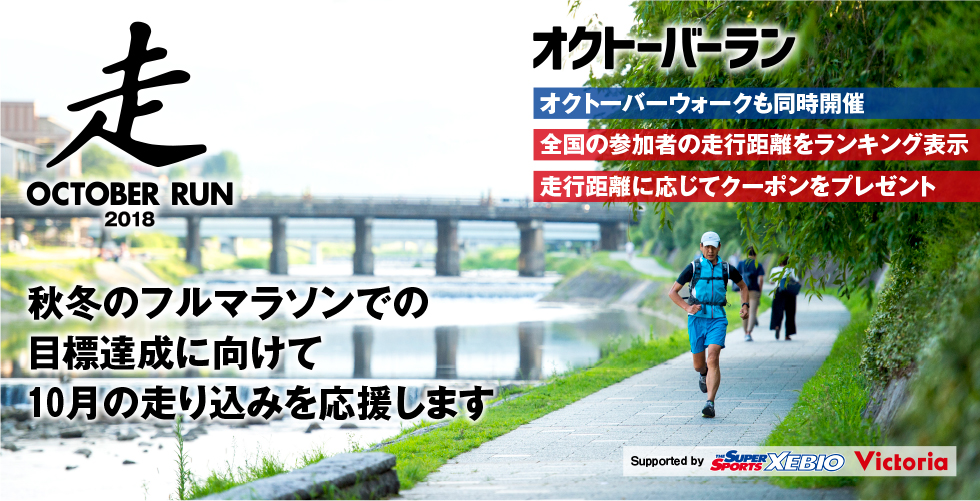 1年で最もマラソン大会の開催数が多い秋冬に向け、フルマラソンで目標を達成するために、10月はいつも以上に走り込みたい!そんなランナーを応援するイベントです。10月1日~31日までの1カ月間に、自分の走った距離を全国のランナーたちとアプリ・インターネット上で競い合います。また、自分で設定した目標走行距離にチャレンジしたり、走行距離に応じた参加特典を目指して走るのも楽しみ方の1つ。オクトーバーランを通じてランナーのモチベーションを後押しします。